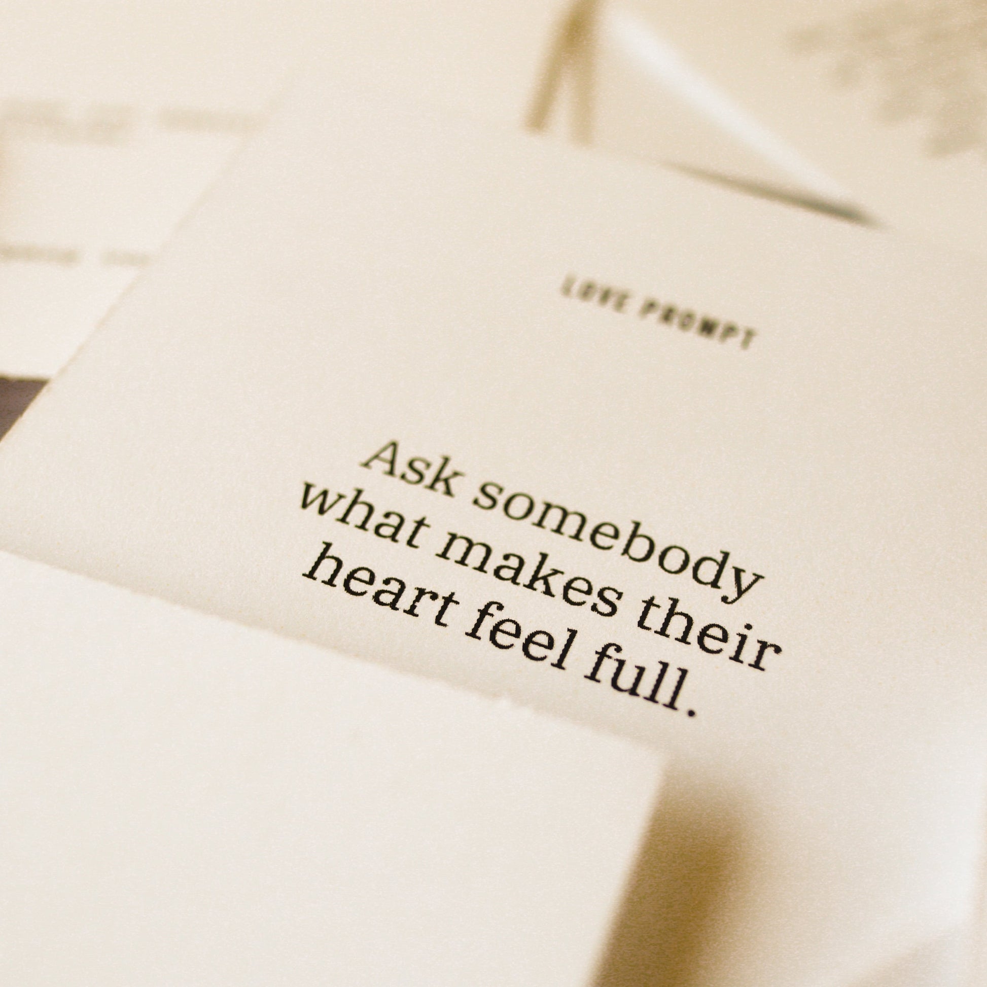 Every Set of Love Notes includes 365 cards printed on natural white archival card stock and a desk stand made with reclaimed wood. As a special treat, every set includes a free pair of our super-popular wooden hearts, all in a giftable box!