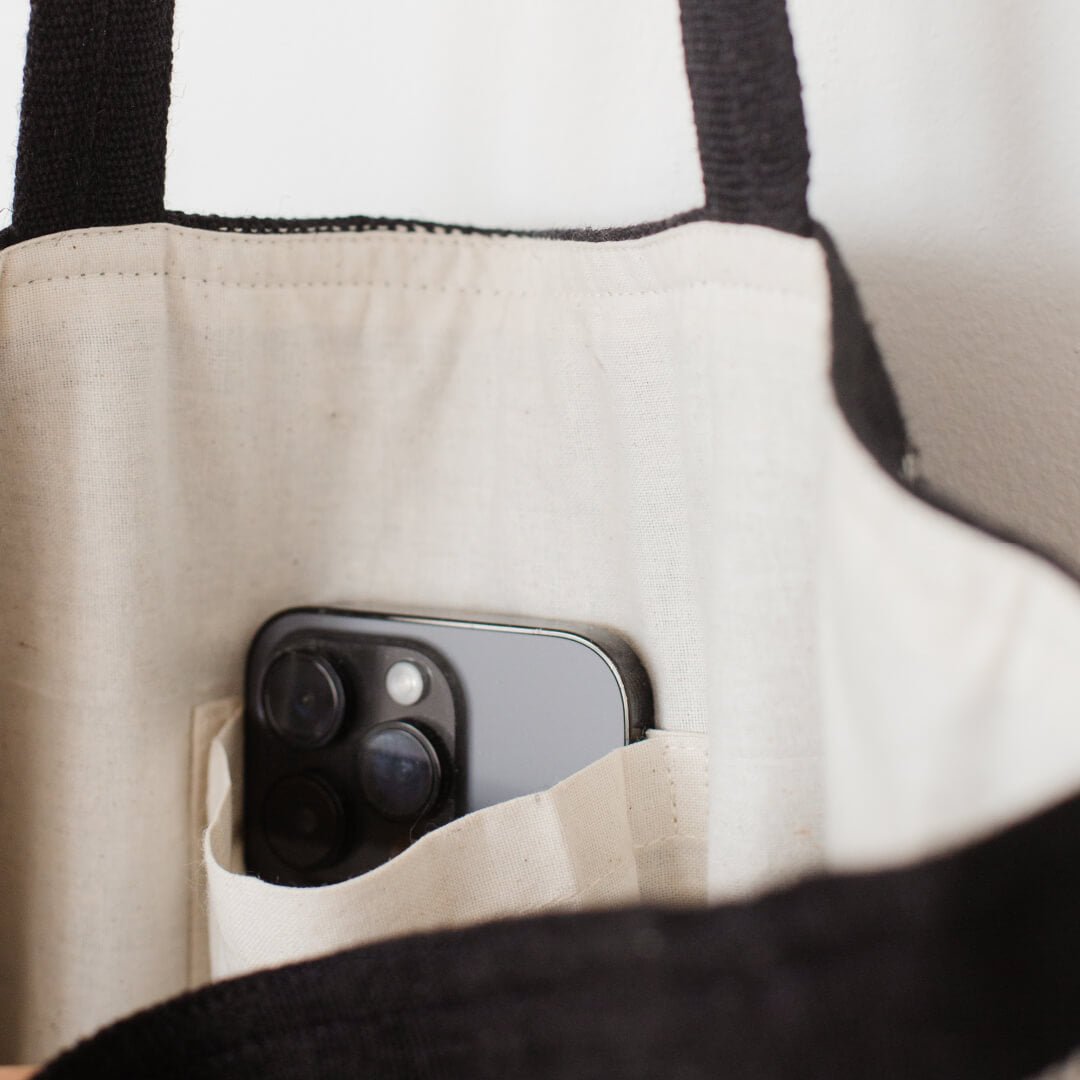 Our new Chloe striped tote seamlessly combines style with sustainability. The fabric is hand-loomed by our talented fair trade artisans in a rustic weave that blends jute and cotton into a gorgeous texture. At once lightweight and sturdy, this generously sized tote is designed with both form and function in mind, featuring one open pocket perfect for a phone and keys and one zippered pocket to secure your essentials.